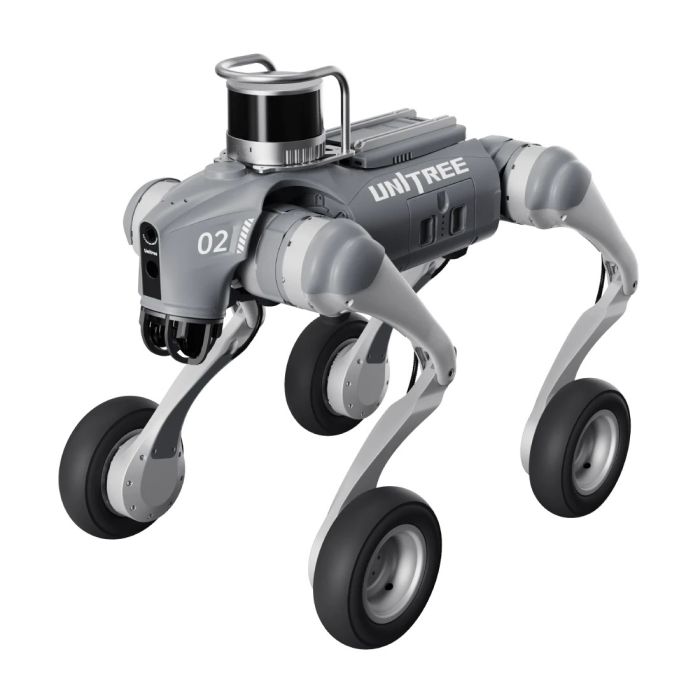 Ang Go2-W line ay nakaposisyon bilang isang “driving all-terrain” robot na nilagyan ng in-wheel motors at 7-inch pneumatic tires, na sumusuporta sa mahusay na paggalaw sa iba't ibang ibabaw habang pinapanatili ang katatagan at kakayahang umangkop ng isang legged robot. Sa mga opisyal na pagtutukoy, sinusuportahan ng Go2-W ang isang 0–2.5 m/s speed range, ≈8 kg payload (hanggang ~12 kg max), at ang kakayahang malampasan ang mga hadlang na hanggang <70 cm sa taas—mga tampok na ginagawang angkop ito para sa mga aktwal na gawain sa paggalaw sa labas ng mga patag na sahig sa loob.